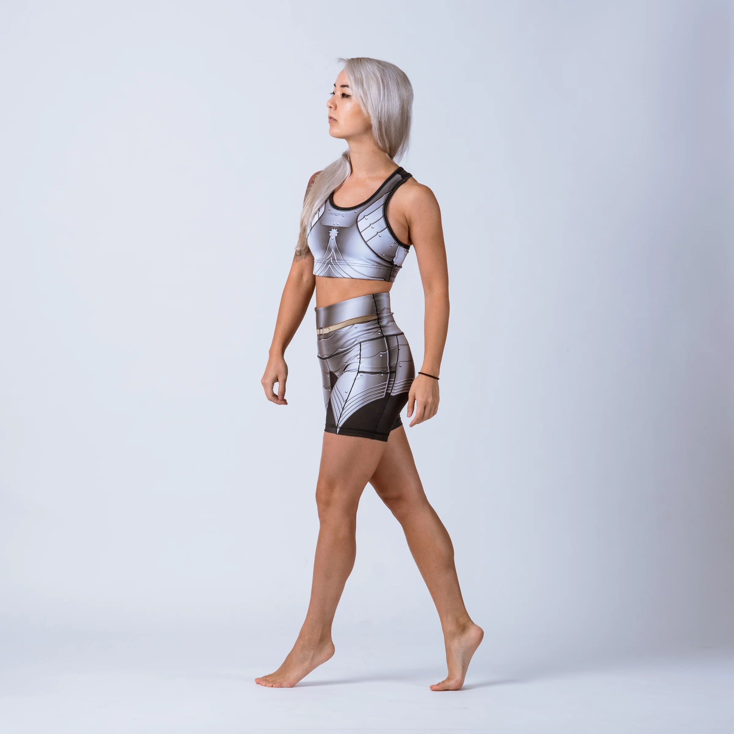 Our Augsburg Sports Bra is inspired by the Gothic style of plate armor popularized in the 15th century Holy Roman Empire (and draws particularly from A21 of the Wallace Collection). During this period, centers of armor production included Nuremburg, Landshut, and Augsburg — guess where we got our name? This German style was characterized by fluted metal, which aids in the deflection of crushing blows and also looks really snazzy. 😮