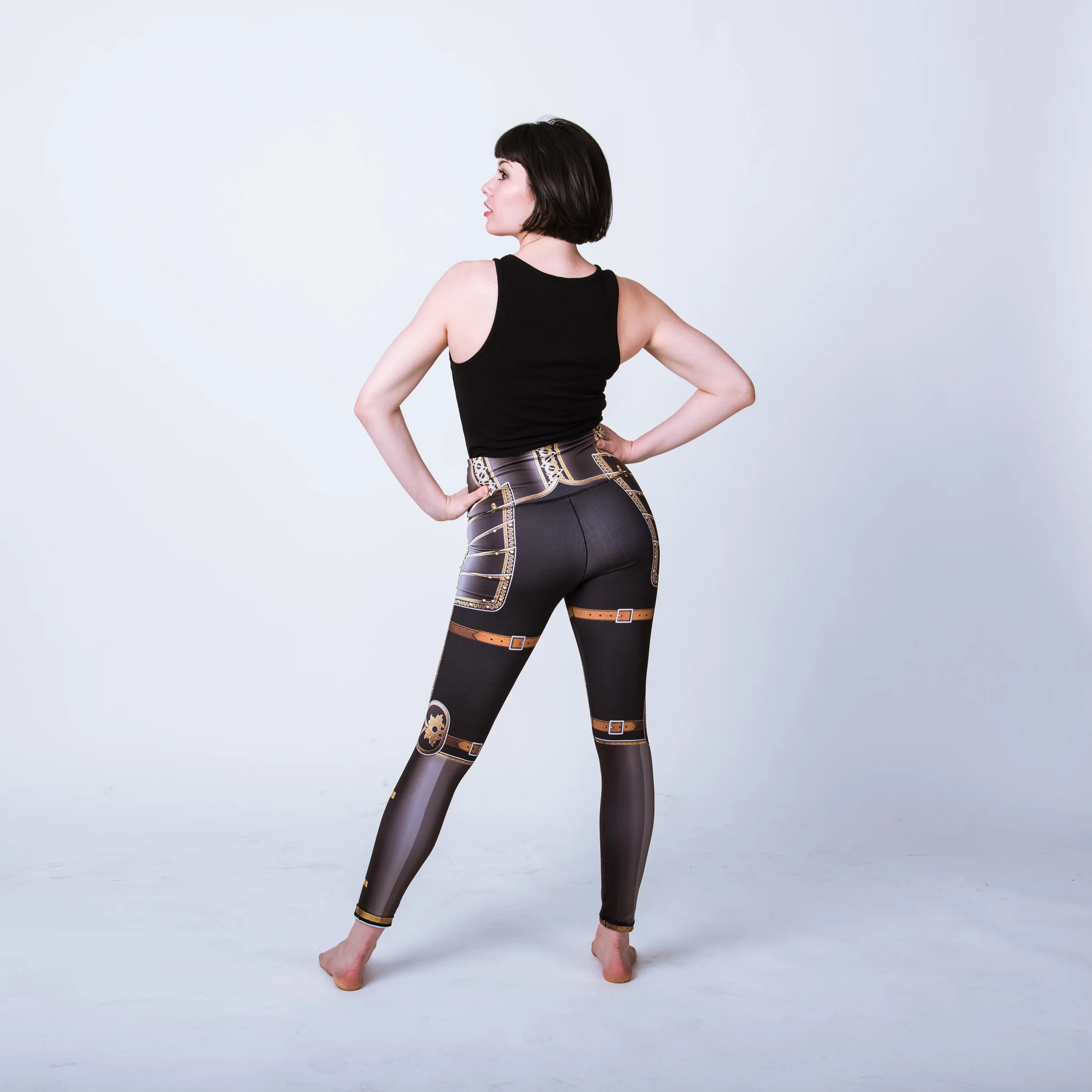 Our Sackville leggings are based on the field garniture of Thomas Sackville, 1st Earl of Dorset. A beautiful armor currently part of The Wallace Collection, it bears significant resemblance to the armor of Sir James Scudamore but for its blued steel: both armors were crafted in the Greenwich Royal Armories under the supervision of master armorer Jacob Halder.