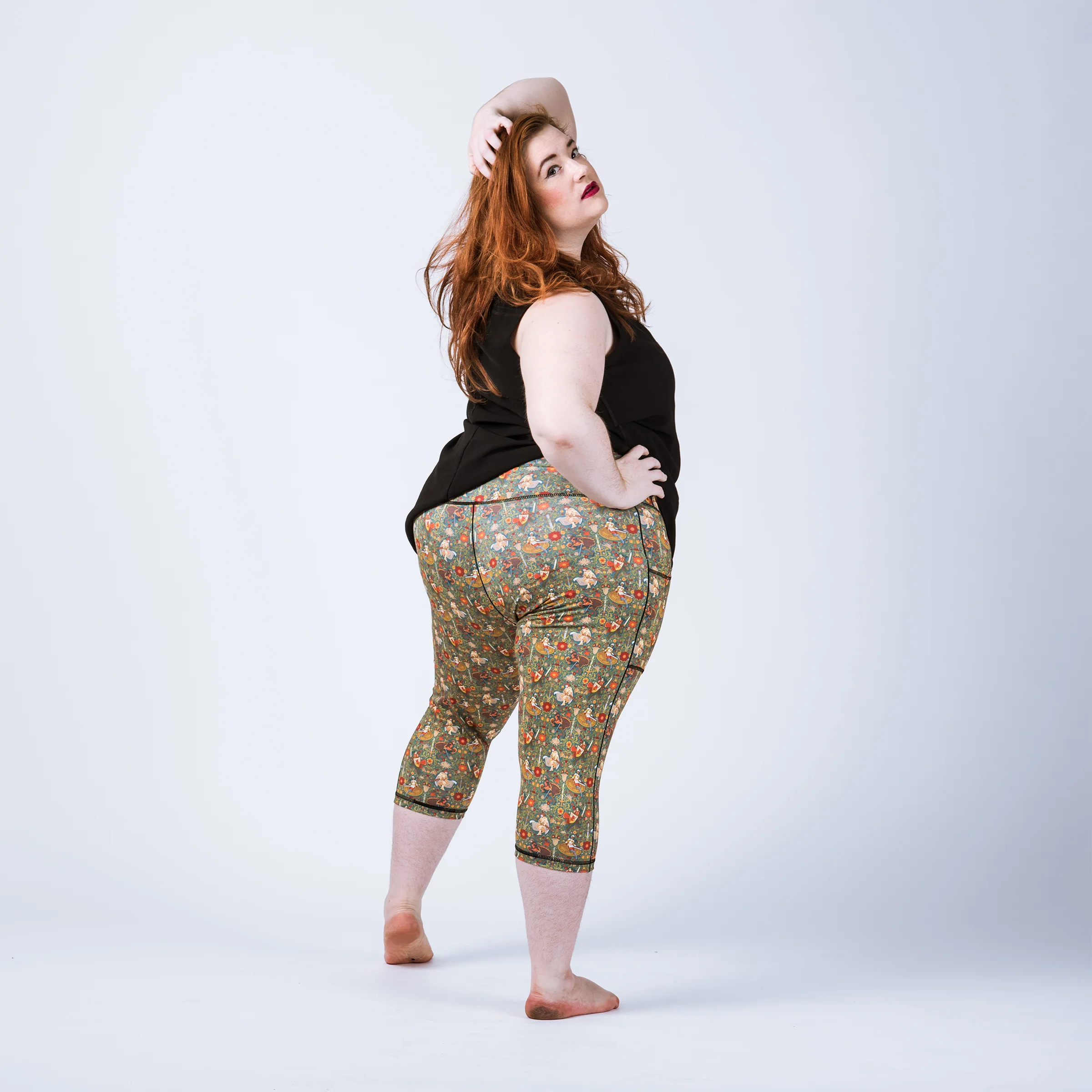 Our model is 5'3 and wearing a size 1X in capri length.
